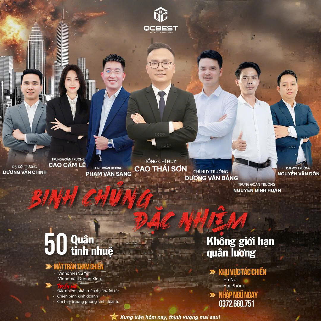 Trong bối cảnh thị trường bất động sản đang phục hồi mạnh mẽ, QCbest – đại lý F1 hàng đầu của Vinhomes, tiếp tục khẳng định vị thế tiên phong khi chính thức phát động chiến dịch “Binh Chủng Đặc Nhiệm QCbest”, chiêu mộ 50 chiến binh tinh nhuệ cùng chung khát vọng bứt phá thu nhập và chinh phục đỉnh cao thành công!