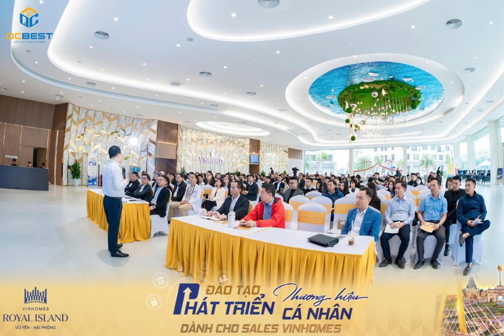 Dưới sự dẫn dắt của chuyên gia Hoàng Trung Dũng, các chiến binh sales được hướng dẫn chi tiết và trực tiếp từ tư duy xây kênh, định vị hình ảnh cá nhân, phong thái xuất hiện trước ống kính, cách kể câu chuyện dự án cho tới định hướng triển khai nội dung dài hạn gắn với Vinhomes Royal Island.